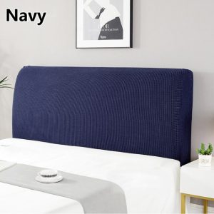 All-inclusive Bed Headboard Cover Elastic Plaid Hotel Home in Color navy and Size Width 120-140cm