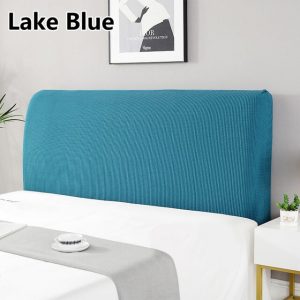 All-inclusive Bed Headboard Cover Elastic Plaid Hotel Home in Color lake blue and Size Width 120-140cm