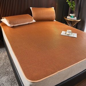 Breathable Rattan Bed Mat Summer Cool Sleeping Mats Non-slip Mattress Covers Protection Pad Foldable Woven Sheet Queen King Size in Color Style A and Size 90x195cm 2pc set