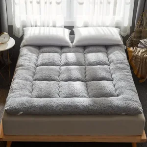 Warm Thick Soft Plush Mattress Breathable Bedding Mat in Size 90x200x6cm and Color gray